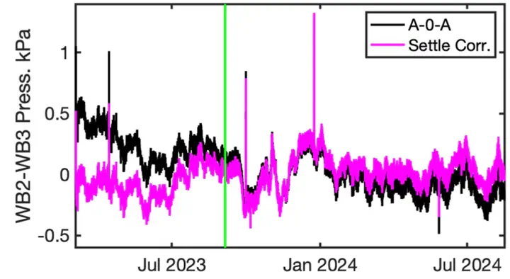 Measurements of the pressure at the bottom of the oceans are useful for understanding ocean currents and vertical motions of the seafloor caused by plate tectonics in earthquake prone and volcanically active regions. A new generation of bottom pressure recorders (BPR) are highly precise, meaning repeated measurements are very consistent. This allows detection of cm-scale changes in water depth. The new instruments solve a long-standing problem of long-term drift in BPR where the pressure measurement exponentially increases or decreases over periods of days to months. The new instruments will help to make advances in both oceanography and vertical geodesy used to study plate tectonic motions, through stable long-term observations. We present results from these new BPR deployed offshore the Bahamas and demonstrate their capabilities. However, they also sink and settle into the soft sediments of the seafloor over the first few months of deployment. We present a means of quantifying the settling and correcting the pressure records for the settling so that they can be analyzed for oceanographic purposes. This correction is an important step for full utilization of this data for future studies.